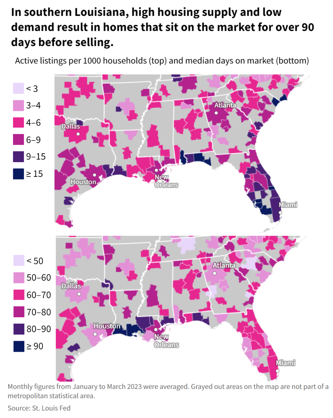 The South has a high housing supply but people in some cities have an easier time selling homes than others. Houses in Florida, for example, are selling much quicker than in Louisiana.